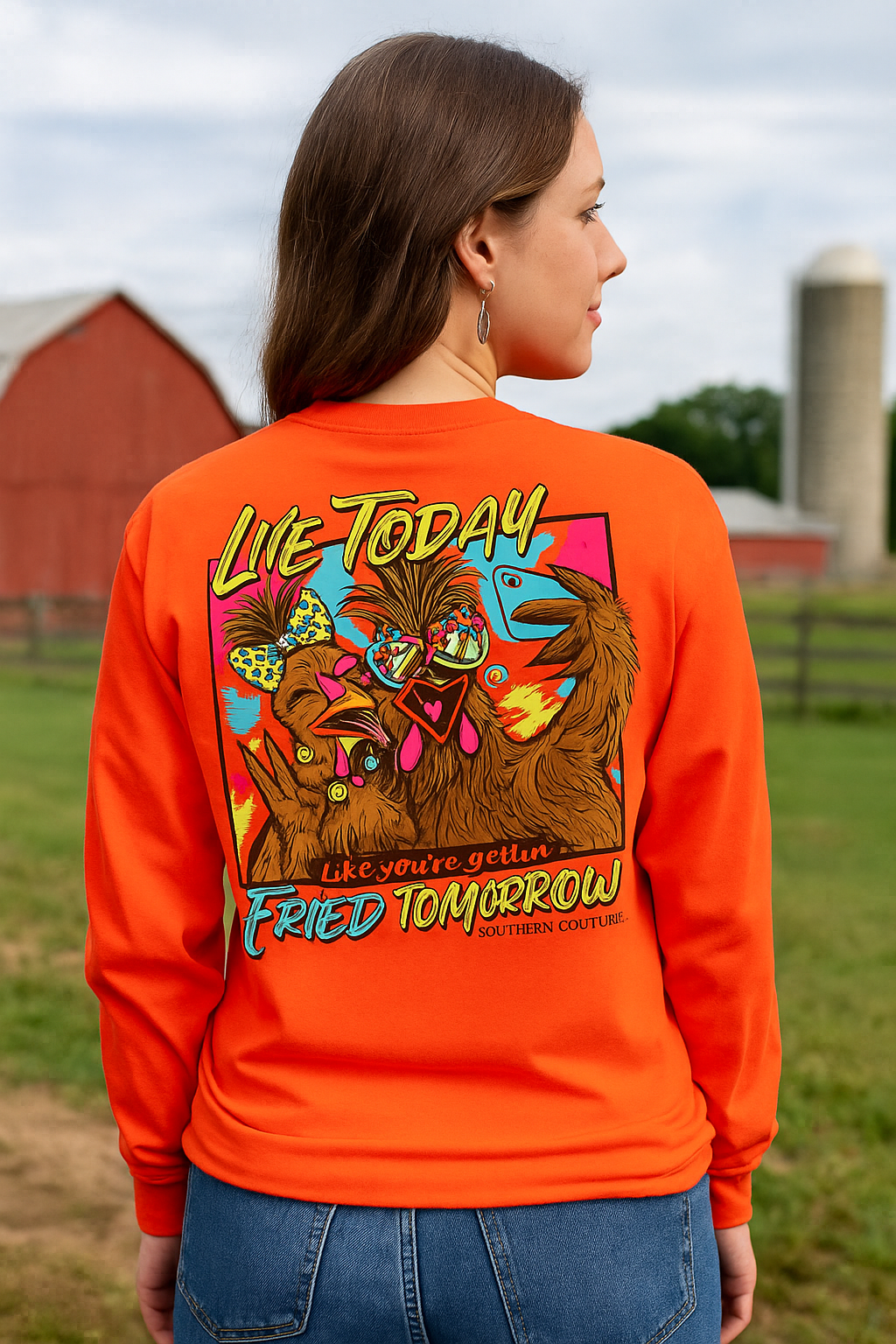 Southern Couture Classic Live Today Fried Tomorrow Long Sleeve T-Shirt
