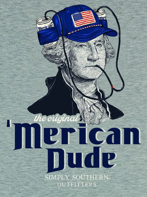 Get your patriotic on with this Simply Southern Merican Dude George Unisex T-Shirt. Perfect for any BBQ or tailgate, this shirt features a quirky design of a dude named George sporting the American flag. Made with high-quality materials, this shirt will keep you comfy while showing off your love for America.