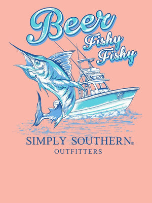"Reel in the compliments with the Simply Southern Beer Fishy T-Shirt. Featuring a quirky fish design, this unisex shirt adds a touch of fun to any outfit. Made with soft fabric, it's also comfortable for any adventure. Perfect for those who love a good catch (of a shirt)!"