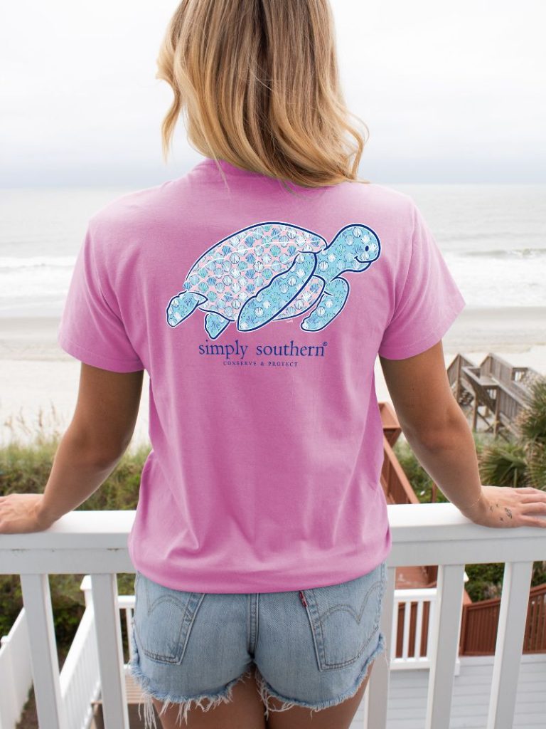 "Track your style with the Simply Southern Turtle Tracker Preppy T-Shirt. This playful tee features a quirky turtle design (with pun-intended "track" markings) and preppy-style font. Perfect for casual outings or beach days. Don't be shellfish, snag one now! (Seriously, these sell fast!)"