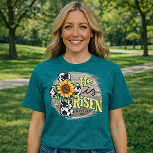 Celebrate faith with a touch of sunshine in this charming He Is Risen Sunflower Cross tee. Featuring a vibrant sunflower design paired with a meaningful cross symbol, it's the perfect blend of spiritual inspiration and cheerful style. Soft, comfortable fabric makes it ideal for everyday wear—whether you're heading to church, brunch with friends, or just spreading good vibes. A wardrobe essential for anyone who wears their faith with joy and confidence.