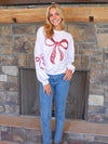 Simply Southern Bow Sequins Long Sleeve Crew Sweatshirt