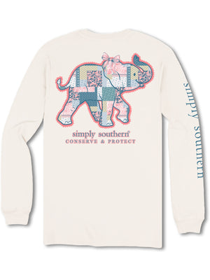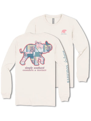 # Simply Southern Elephant Tracker Quilted Long Sleeve T-Shirt Track down your new favorite tee with this delightfully quirky long sleeve featuring an elephant tracker pattern and quilted detailing. The textured quilting adds visual interest and a cozy feel, while the playful elephant design brings instant personality to your everyday look. Crafted for comfort, this Simply Southern piece layers beautifully or stands alone as a statement piece. Perfect for animal enthusiasts and anyone who loves a little whimsy mixed with style—wear it and let your fun side show.