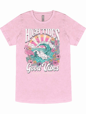 Ride the wave of style with the Simply Southern High Tides Washed Pink T-Shirt. Embrace the relaxed, beachy vibes of this shirt as you soak up the sun and let your worries wash away. Made with high quality fabric, this t-shirt will keep you comfortable and looking cool all day long.