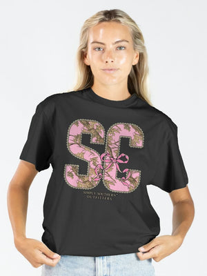 Simply Southern South Carolina Camo Bow Black T-Shirt