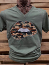 Southern Chics Apparel Camo Biting Lip V-Neck Canvas Bright T Shirt