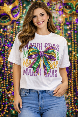 Celebrate the spirit of New Orleans with this vibrant Mardi Gras Bow Canvas T-Shirt from Southern Chics. Featuring a bold, eye-catching bow design in classic Mardi Gras colors, this tee brings festive flair to your everyday wardrobe. Crafted from premium canvas material for durability and comfort, it's perfect for parade season, themed parties, or anyone who loves a touch of Southern charm year-round. Make a statement in style.