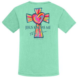 Embrace faith and comfort with this Southern Couture graphic tee, featuring a meaningful "Jesus Knows Me" design. Crafted from premium Comfort Colors fabric, this shirt delivers a soft, lived-in feel that gets better with every wash. The relaxed fit and breathable material make it perfect for everyday wear, whether you're heading to church, running errands, or spending time with loved ones. A versatile staple that combines spiritual inspiration with laid-back style.
