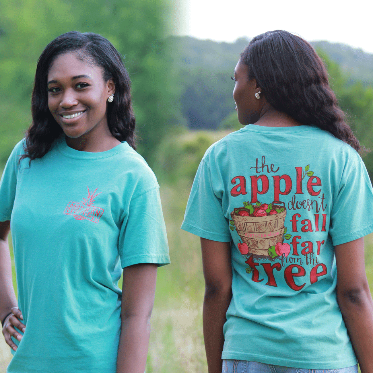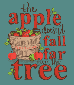 Everyone knows that the apple doesn't fall far from the tree, so show it off in this Southernology® t-shirt. Printed on a Sea Foam Comfort Colors t-shirt, this design is sure to become one of your favorites to wear apple pickin' or at fall festivals!