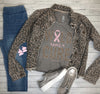 Show your support for Breast Cancer awareness year round with this NEW Southernology® statement tee, WILD ABOUT A CURE! Layer it up with some of your favorite animal print cardigans & embrace your wild (about a cure) side! This design is front print only & printed on a warm gray next level tee.