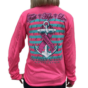Southern Attitude Faith Hope Anchor Breast Cancer Pink Long Sleeve T-Shirt