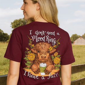 Show off your playful side with the Southern Attitude Mood Ring Cow T-Shirt! Featuring a quirky cow design inspired by mood rings, this tee adds a fun twist to your casual wardrobe. Perfect for those who love a bit of country charm mixed with personality, its comfortable fit makes it great for everyday wear with a wink of southern sass.