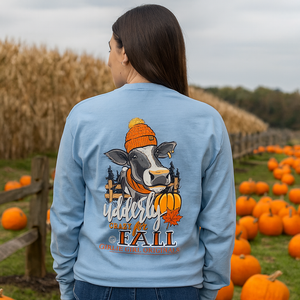 Show your love for fall in this Udderly Crazy for Fall tee! You'll be warm and comfortable in this long sleeve, classic fit tee pre-shrunk and 100% cotton.
