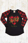 XOXO Valentines Day Buffalo Plaid Sleeve Raglan Long Sleeve Shirt