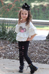 Youth Baby Pumpkin Ruffle Fall Tunic Long Sleeve Top with Distressed Leggings Set