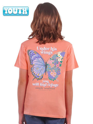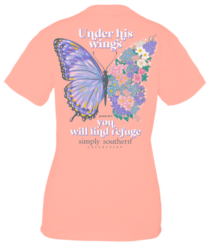 "Fly into style with the Simply Southern Under His Wings Butterfly T-Shirt. Feel free as a butterfly while showing off this playful tee. Spread your wings and stand out in this quirky and fun design."