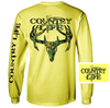 Country Life Outfitters Yellow Camo Realtree Deer Skull Head Hunt Vintage Unisex Long Sleeve Bright T Shirt