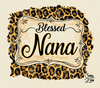 Blessed Nana printed on soft cream tee by Bella Canvas, unisex fit. Front print with leopard print border design.