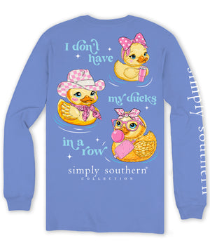 Get your ducks in a row in this playful Simply Southern long sleeve t-shirt! Featuring charming duck designs, this shirt is sure to add a touch of whimsy to any outfit. Stay comfortable and stylish with this quirky addition to your wardrobe!