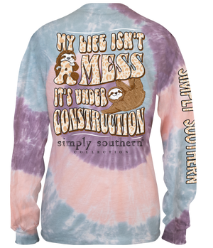Simply Southern My Life Isn't A Mess Sloth Tie Dye Long Sleeve T-Shirt