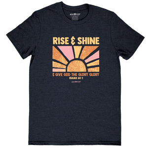 Smile and sing along in this charming “Give God the Glory Glory” grace & truth® T-shirt in Indigo Heather. Loving the Lord puts a song in our hearts and a smile on our face — we just can’t help but #RiseAndShine for Jesus!