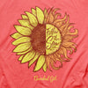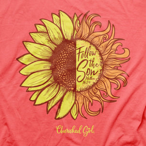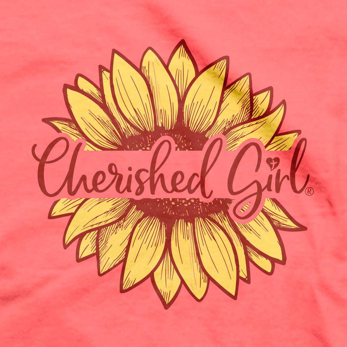 Follow the light of God’s love in this pretty “Sonshine Flower” Cherished Girl® Tee in Coral Silk. Just like a glorious field of sunflowers tilts their beaming faces to the sun, we can tune our hearts to follow Jesus in everything we say and do.