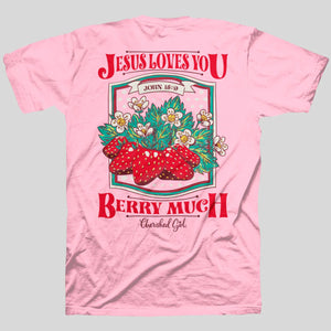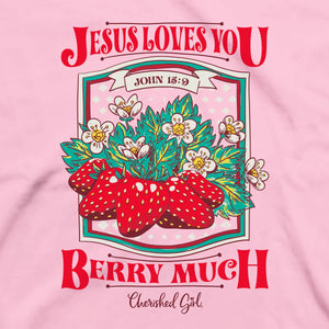 Embrace the sweet life in this charming “Berry Much” Cherished Girl® T-Shirt in Classic Pink. Good things grow and thrive in our lives when we choose to follow Jesus, and that Good News is worth celebrating.