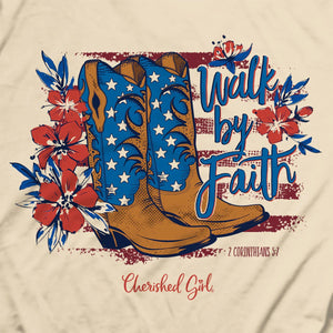 These boots were made for walkin’ by faith! This rustic “Americana Boots” Cherished Girl® T-Shirt in Natural is a stylish way to proclaim your beliefs and share the Good News about Jesus.