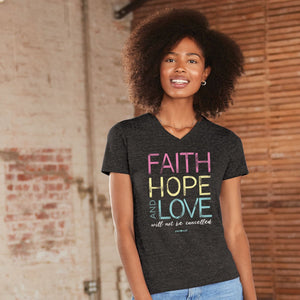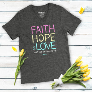 Focus on God’s greatest gifts in this timely “FHL Not Cancelled” grace & truth® T-Shirt in Dark Heather. People sometimes say the only thing constant in this world is change, but we serve an unchanging God whose love for us never falters. God’s Holy Word, the Bible, instructs us in what matters most.