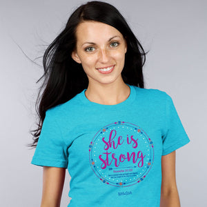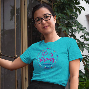 Show your strength in this statement-making “She Is Strong” Kerusso® T-Shirt in Turquoise Heather. As a woman of God, you are made of stern and lasting stuff! God created you for a purpose, He will back you up with the strength you need to stay the course, and He will renew your joy — no matter what challenge you face in this life.