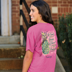 Show your sweet and hospitable side in this charming “Pineapple” Cherished Girl® T-Shirt in Azalea. Be sweet, wear a crown, and grow where you are planted! Through the gift of God’s grace, we’ve been given everything we need to grow deep roots of faith, to share God’s love with others, and to show gratitude for every blessing. God has a good purpose for your life, and He wants to bless you along the journey.