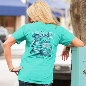 Follow the paths of righteousness in this “Paths” Cherished Girl® T-Shirt in Celadon. God’s ways are not our ways, but the blessings He provides when we walk in His footsteps are beyond anything we can imagine. When we look around to determine who we can trust, we often come up empty. People let us down, jobs are not always secure, and our best-laid plans don’t always turn out the way we intended. Our Creator God is steadfast, and we can trust in Him — always.