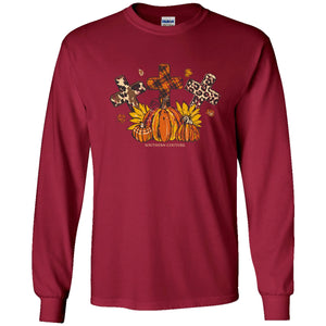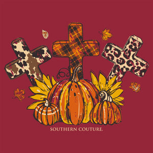 Southern Couture Fall Patterned Crosses Soft Long Sleeve T-Shirt