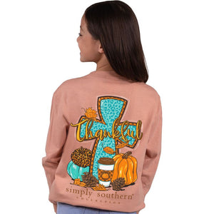 Simply Southern Thankful Cross Pumpkins Fall Long Sleeve T-Shirt
