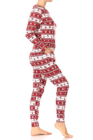 Christmas Fair Isle Santa Fleece Lined Lounge Pajama Set Pants and Shirt