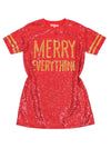 Spread holiday cheer with the Simply Southern Merry Holiday Sequence Dress Top. This vibrant and sparkly top is perfect for any festive occasion. With its unique sequence design, you'll be sure to stand out from the crowd. Get ready to sleigh all day in this playful and stylish top!
