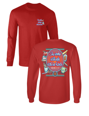 Sassy Frass Proverbs Teacher She Works Willingly with her Hands Long Sleeve Bright Girlie T Shirt