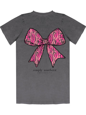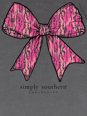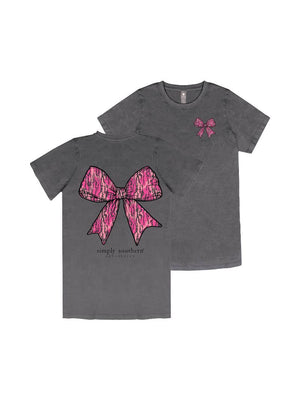 Simply Southern Pink Camo Bow Washed Coal T-Shirt