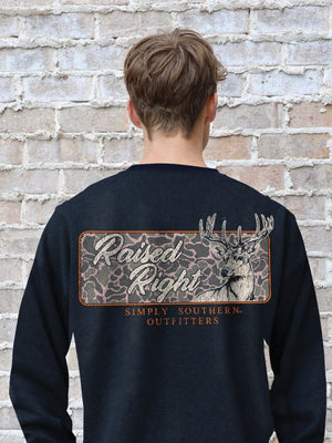 Simply Southern Raised Right Deer Long Sleeve Unisex Crew Sweatshirt