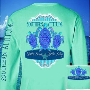Country Life Outfitters Southern Attitude Mint 3 Turtles Starfish Vintage Girlie Bright Long Sleeve T Shirt