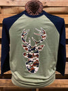 Southern Chics Apparel Camo Deer Raglan 3/4 Long Sleeve T Shirt