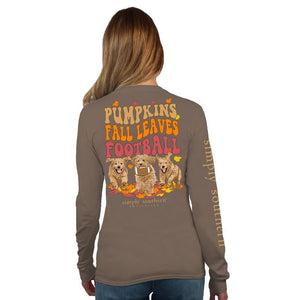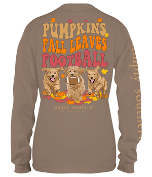 Show off your favorite season with this Simply Southern Fall Leaves t-shirt! This cozy long-sleeve has a classic football design, perfect for your next tailgate party or simply snuggling up with your pumpkin-spiced latte! Get the perfect fall look that'll cheer you up whatever the weather!
