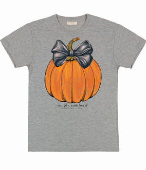 Get ready for autumn with the Simply Southern Distressed Pumpkin Bow Fall T-Shirt. The distressed pumpkin graphic paired with the bow detail adds a playful and quirky touch to this fall staple. Made with high-quality materials, this t-shirt is sure to become your go-to choice for cozy and stylish fall outfits.