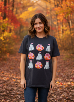Celebrate fall in style with the Southern Chics Ghost & Pumpkins Fall Canvas T-Shirt. This playful tee features charming ghost and pumpkin designs perfect for autumn vibes. Soft and comfortable, it’s ideal for crisp fall days, whether you're out pumpkin picking or cozying up with friends. Embrace the season’s fun spirit with a shirt that’s as lively and festive as you are!