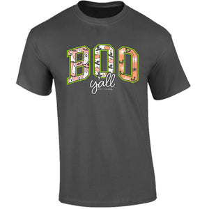 Say hey to spooky season—Southern style! Our Southernology® Boo Y’all Pattern tee blends Halloween fun with a sweet Southern twist. Featuring a festive all-over pattern with candy corns, ghosts, pumpkins, and bats, this graphic tee is a whole vibe for halloween lovers. Whether you're a fan of treats, tricks, or just looking cute all October, this tee is your go-to! Printed on a Comfort Color pepper short sleeve tee.