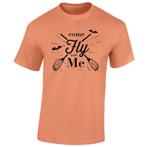 Cast a stylish spell this Halloween in our Southernology® Come Fly With Me tee! This spooky-cute tee is ready to take your Halloween style to new heights. Whether you’re heading to a haunted hayride, passing out candy, or curled up watching Hocus Pocus, this tee is the perfect pick! Printed on a Comfort Color terracotta short sleeve tee.