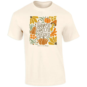 If pumpkins, praise, and pretty tees are your thing—this one’s for you, darlin’! Our Southernology® Thankful Grateful Blessed tee is full of Southern charm, fall flair, and front porch vibes. Printed on a Comfort Color ivory short sleeve tee.