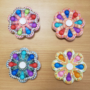 The Patterned Fidget Spinner Push Pop It Bubble Fidget Toy is great for homes, road trips, classrooms, therapy sessions, and as a gift. Kids love the colors and like to trade with friends.