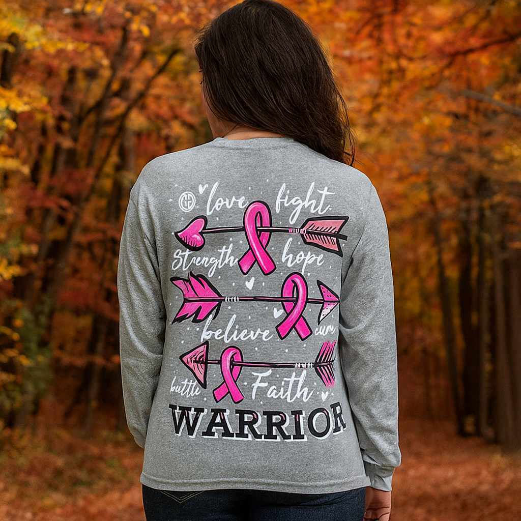 Girlie Girl Originals Breast Cancer Warrior Arrows Long Sleeves T Shirt