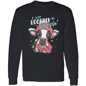 Get ready to udderly freeze with this Girlie Girl Originals T Shirt! Featuring a quirky cow design, this long sleeve shirt will keep you cozy and stylish. Perfect for any bovine lover, this shirt is a must-have for your wardrobe. Don't get left out in the cold without one!
